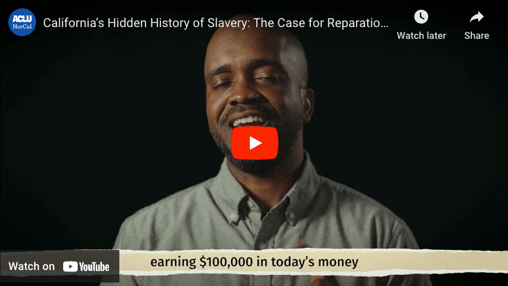 California’s Hidden History of Slavery: The Case for Reparations, a video from the ACLU of Northern California’s Gold Chains campaign, tells a story that was deliberately left out of official CA histories. Watch and learn why reparations are not only just but necessary.